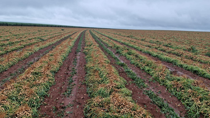 Fotos de campos de amendoim plantados em 13/10/25, Guatapará, SP, região da Mogiana.