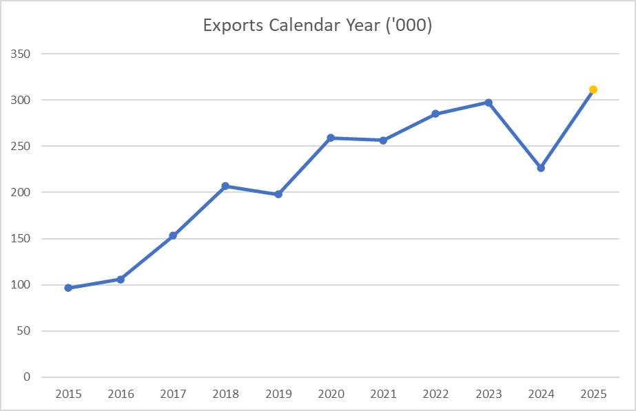 With the December figures out, we are able to analyze the whole calendar year exports: